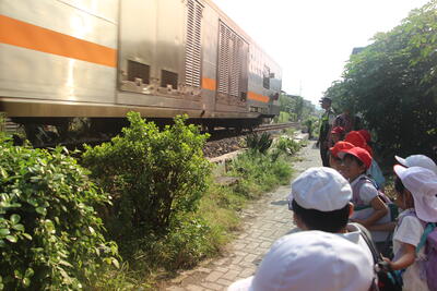 近くで電車を見たり、モスクを訪ねたりしてインドネシアの文化に触れました。またインドネシア語を使って買い物をする学習も行いました。