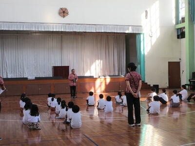 小学生から中学生までが、体育の授業で一生懸命ソーラン節に取り組んでいます。昨年度から、SJSの伝統として全校で一つのソーラン節を作りあげてきました。合同で実施する体育の授業では、上級生が下級生に教え合ったり、昨年よりもよいソーラン節を目指して自分たちで部分的な動きを考えたりして、オリジナルのソーラン節を作り上げています。この日は、小学1年生から小学6年生が合同練習をしました。「やー!」という大きな声が、校庭いっぱいに広がりました。