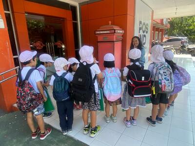 郵便局では、クイズを出してもらったり、はがきにスタンプを押させてもらったりと、貴重な体験ができました。