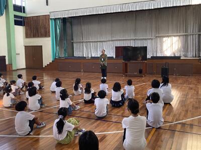 終業式では、1学期の子どもたちの頑張りや夏休みの過ごし方について校長先生や担当の先生からお話がありました。