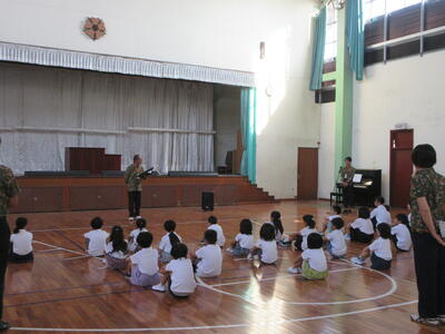 子どもたちは、大使のお話を聞いたり、学習の様子を見ていただいたりしました。