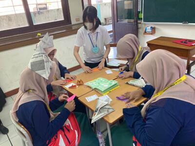 20日金曜日、現地の中学校であるブミソラワット中学校の生徒がスラバヤ日本人学校に来てくれました。書道や折り紙など日本の伝統文化を通して交流を行いました。英語やインドネシア語でたくさんコミュニケーションを取ることができ、とても良い交流活動となりました。