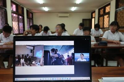 9月11日(水)に国際文化委員会による集会が行われました。児童生徒が6チームに分かれてインドネシア語のクイズに挑戦しました。今月行われる現地校との交流に使える言葉や日常で使う言葉を楽しみながら覚えることができました。9月20日(中学部)、27日(小学部)の交流校招待で、今回学習したことが生かせることを期待しています。