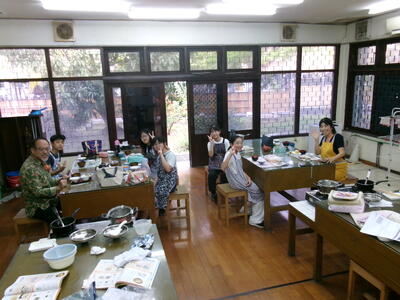 当日は、Papaya Fresh Galleryの丸田様と旦那様にお越しいただき、ご指導のもと、インドネシアの卵料理3品を作りました。
