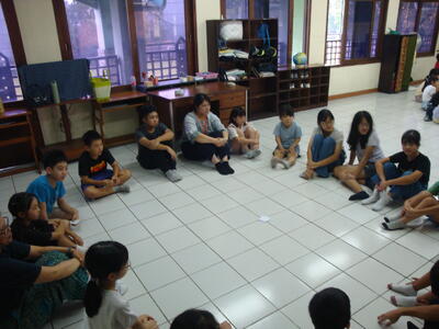 インドネシアのジャワ島やバリ島で古くから受け継がれてきた、人形を用いた伝統的な影絵芝居が、国際文化委員によって披露されました。幕の向こうで巧みに操られる人形が生み出す美しい「影」に、子どもたちはぐっと引き込まれ、目を輝かせながら楽しく鑑賞していました。